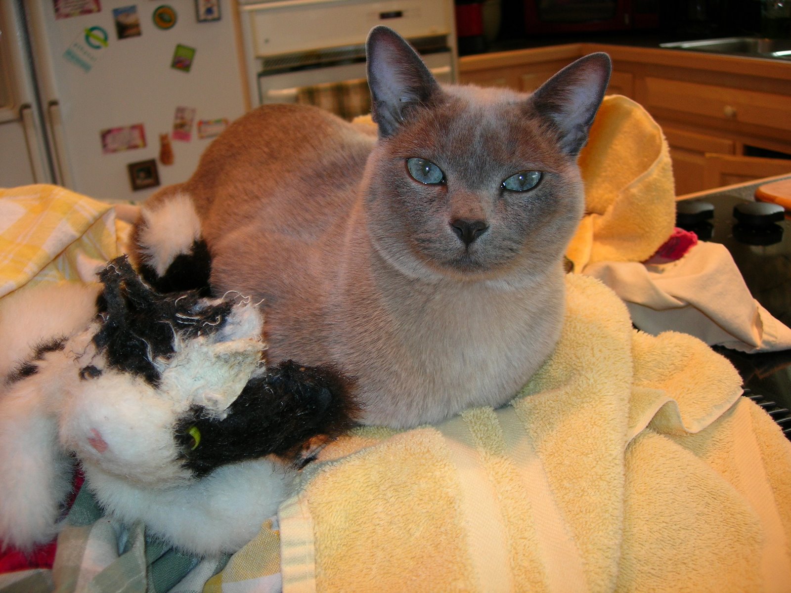 I believe that Lucy is actually proud of what she has done to her cat puppet. It is barely recognizable and is so severely damaged that she cannot play with it unsupervised any more…so sad…every once in a while I pull him out and let her hold him…what will she do when my plan to get her a baby brother…whom is already named Winston Cooper Kitty…is fulfilled…will she want him or will she do to him what she has done to her puppet…hmmm…she has been the only kitty for a while now…and is loving and sweet but very very spoiled…